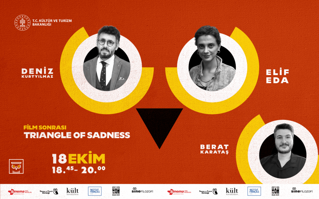 Keskin mizahı ve acımasız sınıf eleştirisiyle modern dünyanın absürtlüğünü gözler önüne seren Ruben Östlund’un Cannes’da Altın Palmiye kazanan filmi sonrası Deniz Kurtyılmaz, Elif Eda, Berat Karataş keyifli bir sohbet gerçekleştirecek. Triangle of Sadness gösteriminin ardından düzenlenecek bu sohbet, filmi mizahın, ironinin ve politik eleştirinin kesişiminde çözümlemeye odaklanıyor. İzleyiciler, filmi sinema yazarları ve akademisyenlerle birlikte yeniden keşfedecek.